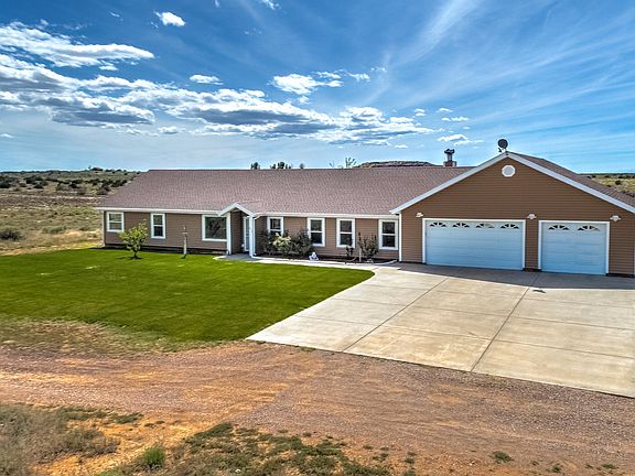 Beautiful, expansive views in all directions from this extremely well-maintained home on 13.48 acres within city limits! Solidly built home features a spacious kitchen with a large island with granite countertop & a new range and refrigerator, a breakfast nook, a Bosch dishwasher, plenty of quality, soft-close cabinets, & a separate dining area. Home is light & bright, with lots of good-sized windows and a family and Living room stone fireplaces - perfect for cozy winter evenings by the fire! New Economical, dependable 3 zone in-floor heating. Huge garage (1519 s.f.) with openers is well-insulated and also heated, and can hold up to 6 cars. Patio in back, shade trees, & under ground sprinkler system; 50 A RV hook-up. Perfect horse property, with lovely terrain & lots of space for dream fulfillment!