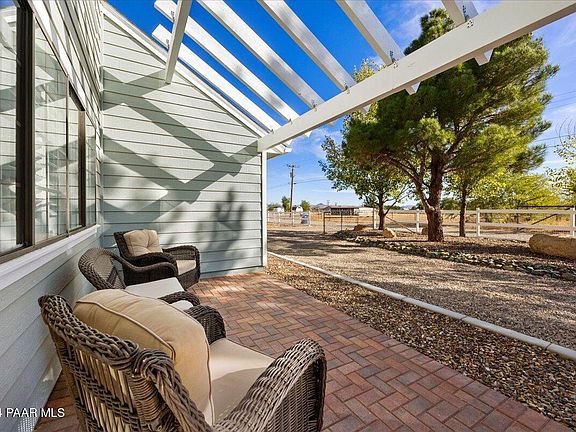 This stunningly renovated Chino Valley home boasts the best of country living while being just moments from shopping and schools and a short drive to Prescott and Prescott Valley. Upon arriving at the home you will be struck by the attractive approach with a circle drive, white-rail fencing, new exterior paint, and an inviting front porch. Upon entering the home numerous updates are immediately apparent, including crown molding and baseboards, beautiful tile flooring throughout the common area, plantation shutters, and new interior paint. The kitchen features white shaker cabinets with soft close drawers and doors, a farmhouse sink, granite counters, and a suite of stainless steel appliances plus a rustic island that adds charm and utility, recessed lighting, and a spacious pantry.