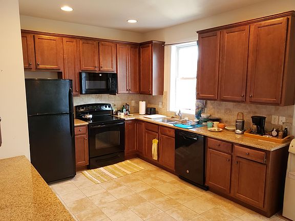 Townhouse/Condo in excellent condition. Three levels. Bedroom, full bath, and garage on the lower level. Living room, dining room, kitchen, and half bath on 2nd level. Two bedrooms and two full baths on the upper level. Modern kitchen with granite countertops and tile floor and backsplash. All appliances included. Washer/dryer on the upper level. Deck. Heatpump. The tenant pays all utilities. Walk to enter of town. Call John Fretz for details and showings. One-year lease. Dogs under 60 lbs permitted. tenant pays electric, water & sewer, and refuse fee.