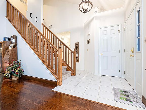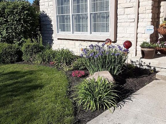 Located in popular Shadowbrooke subdivision on a beautiful 0.7 acre lot, this updated 2664 SF 1.5 story features maintenance-free stone and vinyl exterior, a 2-car attached garage, 3 bedrooms, 2.5 baths, first floor owner's suite, formal dining room and 2nd floor loft. First floor includes a vaulted ceiling living room with a GLFP, dining room, kitchen with breakfast bar and adjacent breakfast room leading to a large deck and picturesque rear yard, owner's suite, first floor half bath and laundry room. The owner's suite includes a large walk-in closet and en suite bath with two separate granite-topped vanities and custom shower. The breakfast room and breakfast bar offers a spacious area for informal dining plus a wall of windows and walk out to a deck and beautifully landscaped yard, An open stairway from the foyer leads to a second floor loft family room (which overlooks the living room and entry area) as well as two additional spacious bedrooms and a full bath with granite vanity. You'll love the rear yard which backs up to a small stream and a community walking path. Location is convenient to US 33 and local grocer, eateries, movie theater and walking path to nearby park, and pond with water fountain Numerous improvements and updates to the property in the past 3 years which include new concrete front steps and entry area, stone chimney tuckpointing, fireplace igniter replacement, inspection & cleaning, new Lennox AC, new shed, toilets, garbage disposal, light fixtures, insulated/pleated window blinds, new kitchen flooring and a 10'x20' outdoor storage shed. Other amenities include granite countertops in kitchen & baths, wood floors, owned water softener and beautiful mature trees and perennials. Washer and Dryer are negotiable. Property has a radon mitigation system located in the partial basement. ADDITIONAL PHOTOS COMING SOON!