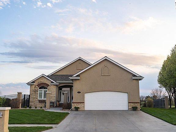 This outstanding home in the Turkey Creek Addition has fabulous views of the golf course and your very own personal back yard oasis. Pride of ownership is evident throughout this four bedroom, three bath home! This Beautiful home features two bedrooms, two bathrooms, open floor plan, fireplace, main floor laundry and tons of natural light on the main floor. The View out basement features two bedrooms, one bathroom and large family room complete with fireplace and fully functional wet bar. The two car garage has a 3rd door for lawn mower or golf cart storage. Make your way to the back yard where you can enjoy the sunset from the covered deck and relax in the pool on a hot summer day or entertain family and friends around the fireplace under the pergola.