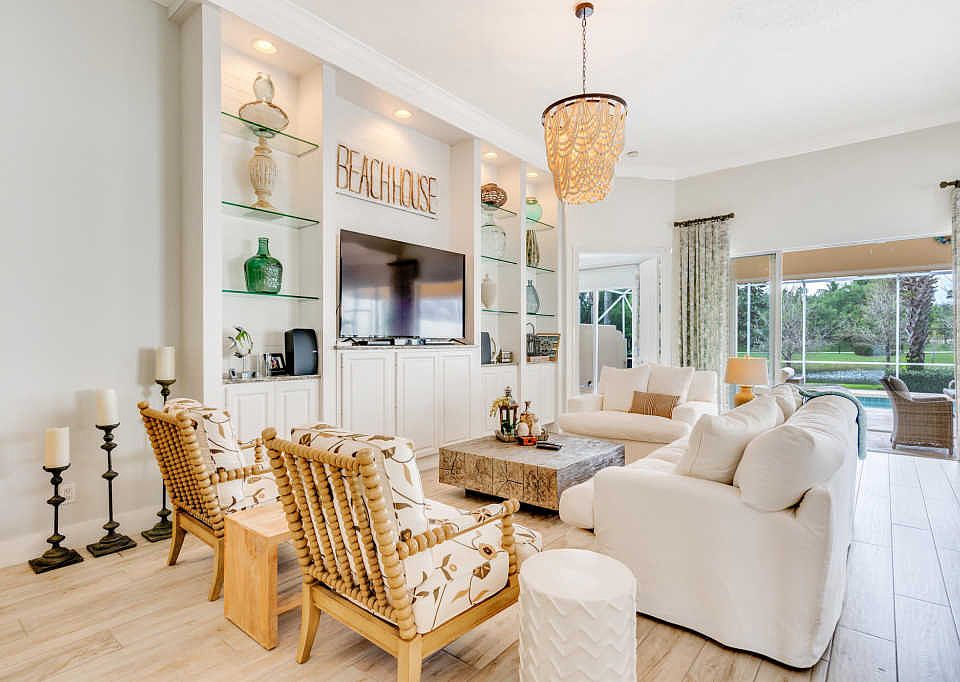 Stunning 3 bedroom, 3 bath plus den Oakmont model in the highly desirable Wellington neighborhood of Villagewalk. No detail has been missed in this beautifully designed home. High ceilings adorned with large crown molding, large baseboards, and beautiful wood look tile spread throughout the entire house. Plantation shutters are in each bedroom. Custom made drapes complement each sliding glass door. Stainless steel appliances compliment a bright and airy kitchen complete with custom woodwork on the kitchen island. A gorgeous built in covers one wall of the living room making it an impressive focal point. The lovely master bedroom leads to a large master bath with a built in vanity just for her. Even the large laundry room enjoys special upgrades with granite counter tops and