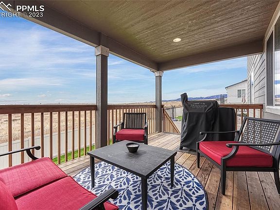 Welcome to your practically brand new dream home with POSSIBLE SELLER INCENTIVES and/or an ASSUMABLE LOAN! This exquisite move-in ready gem presents a thoughtfully designed open concept floor plan. Prepare to be wowed by the expansive chef-inspired kitchen that stands out with its seamlessly blending luxury and durability which will impress any level cook along with a generously sized pantry. A covered, walkout deck right of the kitchen will be enjoyed for outdoor meals and conversation. To finish off the main level will be a formal dining room, powder room and a living room for all to enjoy. Retreat upstairs to find a spacious loft that will provide versatility for all your needs. The primary bathroom is a true sanctuary, featuring a stunning walk-in shower and a spacious walk-in closet ensures ample space for your wardrobe. Along with 3 additional bedrooms and a full bath. The laundry room rests outside the primary bedroom. This home comes complete with a finished basement, including a second family/rec room, an extra bedroom and bathroom. There is a storage room currently used as a gym but with room to grow it could be another bedroom. The backyard has vinyl side fencing and full landscaping! AND backs to open space with no neighbor looking into your backyard. Nestled just off the Powers corridor, for quick access to shopping, delightful dining, and the strategic proximity to Fort Carson Army Base, Peterson Space Force Base, the Amazon distribution center, as well as the Colorado Springs Airport. Come visit today and make this stunning home your own!