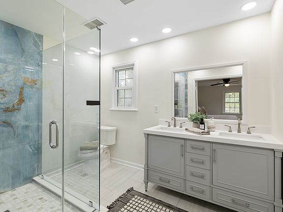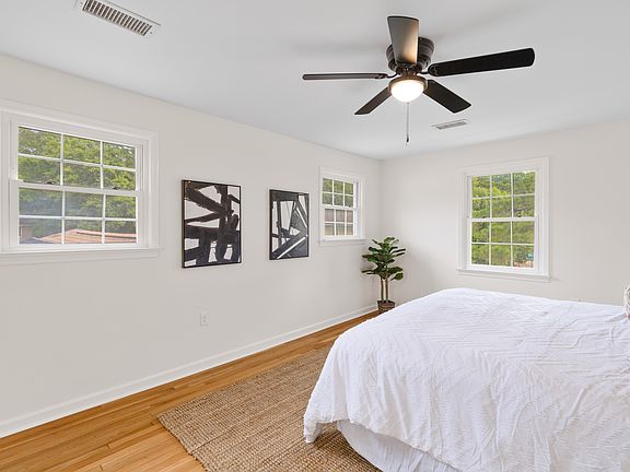 Beautiful mid century brick home meticulously renovated with modern amenities. New kitchen with 42in upper cabinets, quartz countertops, and stainless steel appliances. Gas stove. New hot water heater. Washer/dryer included inside house. New toilets, furniture quality vanities and Master bath with beautiful custom walk in tile shower. Beautiful white oak floors and ceramic tile throughout. Fenced in back yard. Functional fireplace. 2 car garage with 200sqft accessible storage above and oversized driveway. No HOA means no parking restrictions. RING doorbell accessible by tenant only. Furniture shown in pictures is not included.
