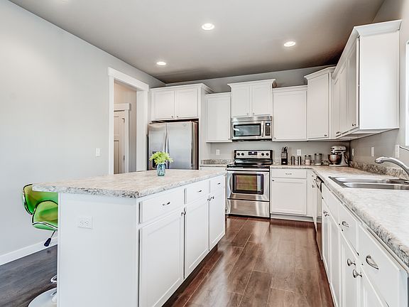 This beautiful Eagle Mountain home was built in late 2014 and still looks new, inside and out! The design of the home is very open with plenty of room to grow. The large master bedroom features a spacious walk-in closet, double sinks, and a separate shower, tub, and toilet. Other features include matching Whirlpool stainless steel appliances and white shaker cabinets with dark brown Pergo flooring in the kitchen, a water softener, cordless blinds, remote control ceiling fans, and much more.