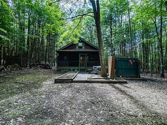 Get ready for summer! This private, secluded cabin is READY for you to come and relax! Great screened porch with NEW hot tub! Beautiful walking & hiking trails throughout the 5+ acres of property. Recent cabin updates include new laundry room, insulation at the crawl space, luxury vinyl tile flooring on the first-floor level living area. Loft area adds great space to nap, watch tv or read (not included in total square footage). When it gets chilly you can heat from the wood stove, electric heat or the gas fireplace! Wonderful vacation home or a year-round!