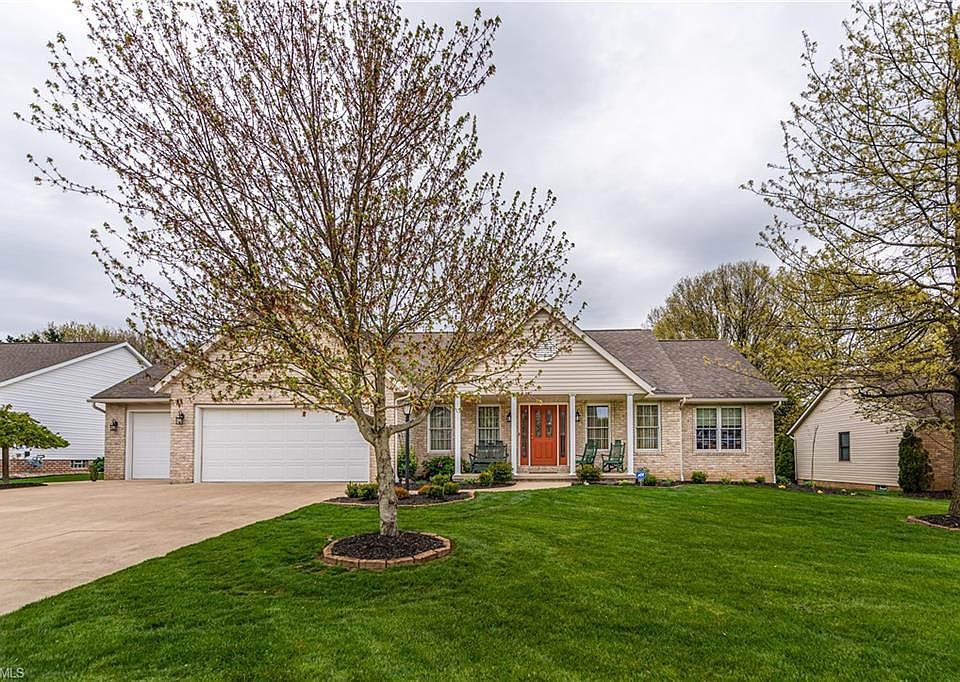 Absolutely beautiful, custom built, split bedroom ranch with 3 (possibly 4) Bedrooms, 3 Full Baths, 3 car garage and a stunning finished lower level located in desirable North Canton! This home features over 3800 sq. ft. of living space, open concept floor plan, an owner's suite, oak trim, solid wood doors through out and will not disappoint! Inviting covered front porch leads you into the foyer with beautiful ceramic tile and is open to the formal dining that features oak crown and chair rail molding, trey ceiling and herringbone pattern flooring outlined with mosaic glass tiles. Spacious eat-in kitchen that is fully equipped with stainless steel appliances, granite countertops, oak cabinets and direct access to the two-tier composite deck with post lighting. Continue into the cozy great room with plush carpet and a remotely operated gas fire place. Luxurious Owners suite with a sitting area, cathedral ceilings, his/her walk-in closets, Jacuzzi tub, double sinks and a walk-in shower. A family room, two additional nice sized bedrooms, a full hall bath and first floor laundry complete the main level. Entertain or quarantine in the finished, walk-out lower level containing approx. 1700 sq. ft. of additional living space. Beautiful recreation room with custom full sized wet bar, built-in wine cooler and mini frig, and soft close cabinets. Also a work out room, one bedroom and a full bath with a walk-in shower. Large shed for extra storage. Schedule your private showing today!