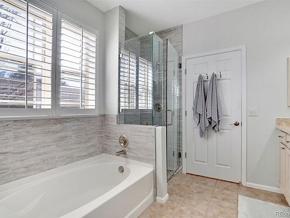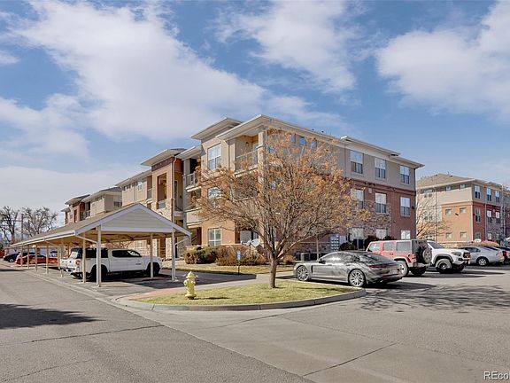 Don’t miss this amazing main floor condo in popular Residences at Olde Town Square, Arvada! The perfect location for nearby Olde Town entertainment and shopping for a fraction of the cost of many of the neighboring communities! You’re greeted by warm hardwood floors throughout this spacious and open floor plan, easy for entertaining. The spacious great room is perfect for our constantly changing winter weather, warm up in front of the cozy gas fireplace or enjoy your morning coffee from the front covered patio. Cooks of all skill sets will appreciate the updated kitchen with handsome black cabinets, stainless steel appliances and granite countertops. The dining room will not dissapoint as it is large enough for a full size table which is perfect for hosting dinners The primary bedroom features a walk-in closet with professional organization system and recently updated ensuite bathroom that features new shower, tile and stone counters. The 2nd bedroom is equally as spacious and also offers built in closet organizers. Next to this bedroom is an additional full bathroom that is also generous in size and updated. Perfect for guests. Tasteful finishes throughout include neutral paint colors with plantation shutters. Laundry hook-ups next to the kitchen. Everything is clean and well cared for...a true turnkey property. No need to wake up early to clean off snow from your car, this unit comes with a carport! Enjoy the nearby trails and short walk to Griffith Station Park with playgrounds, picnic pavilions, basketball court, and horseshoe pits. You’re also minutes to Historic Olde Town Arvada’s boutiques, eateries, breweries, and summer farmer's market. Easy access to I-70/I-76 with the nearby G-Line, RTD park-and-ride, you’re a short drive to the foothills and downtown Denver - the ideal basecamp for all of your Colorado adventures! Welcome home!