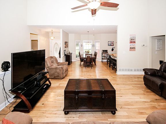 Lovely 3BR 2BA brick front home in the gated lake community of Fairfield Plantation. More than just a neighborhood, Fairfield Plantation offers resort style living with 3 lakes, beach, 2 pools, tennis courts, restaurant marina, rec center, golf courses, and nature trails. Homeowners can join in on many neighborhood events throughout the year. Private security and fire station also included. Located in a quiet cul-de-sac, this home sits over a full basement, on a double lot. A spacious great room with vaulted ceilings, fireplace, and hardwood floors opens to a screened porch, overlooking a wooded backyard. Split bedroom plan, with an oversized master bedroom, and master bath featuring double vanities, tile flooring, sep/tub shower, and walk-in closet. Full daylight basement is stubbed for bath, and includes workshop, interior exterior access with patio, and endless options for future expansion/projects.