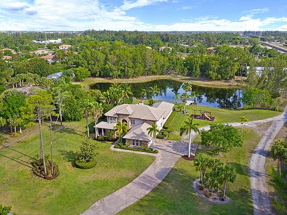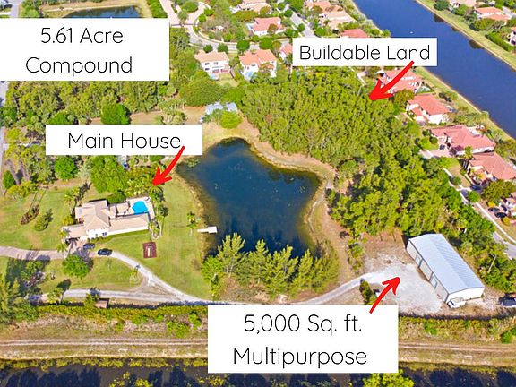 ONE-OF-A-KIND Lot with 5.61 Acres that can house your family, business, recreational vehicles and anything your heart desires. NO HOA allows you to enjoy living in the city but being free to enjoy your large parcel of land without hassle. One of the most special parts of this land is that it holds a 5,000 square foot newly built aluminum building that is currently used for athletic training. It is perfect for any owner that wants to run their business on the premises, hold cars, boats, make a workout facility or even rent it out and make income, as it has a separate driveway. This 2006 home has full hurricane impact windows and doors, a fireplace, a two-year old LARGE resort-style salt water swimming pool in a private backyard while you over look your private dock and lake.