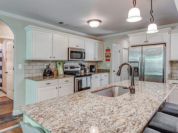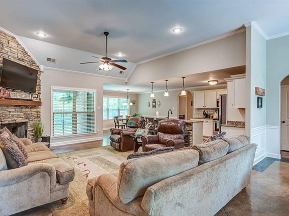 Nearly New! 2018 Custom home on approximately ONE ACRE LOT!! 4 bedrooms down all one one level plus bonus room up! Bonus room is huge with giant walk-in closet office & hardwood flooring; Very private tree lined property! BON LIN SCHOOLS! White kitchen cabinets with granite counters- Big Island overlooks greatroom & formal dining room! Stone accents throughout! Open concept living, big shed, covered patio, mature trees - Don't miss this one!