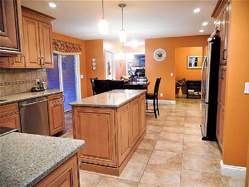A beautifully updated 5 BR, 3.5 Bath Colonial home w/a large private yard. Totally renovated kitchen boasts high end cabinets, quartz counters, ceramic tile, island & sliding door to covered patio. Hardwood floors. 2 Master suites. Formal living & Dining room. Private den. Family room w/fireplace Updated baths. Inground salt water pool & more! (Source: RES 150)