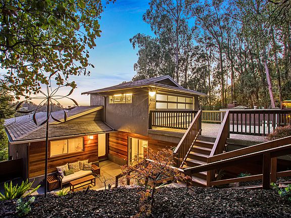 Let me make you smile: On a clear day, you can see forever from this chic 4-bedroom, 3-bathroom, midcentury modern-style Montclair home. This in not just a place to live; it's a lifestyle.  Here you can create the life you have always dreamed of. From the moment you enter, you will enjoy the expansive, light-filled spaces. The open living room is instantly appealing with its large windows and views of the Bay. Your conversations will grow warmer in front of the crackling fire. Imagine the ways you can choose to spend your holidays: this is a great place for guests. Enjoy sophisticated entertaining in the formal dining room or the casual elegance of gatherings on the sprawling deck. The expansive redwood deck with aircraft cable railing invites you to enjoy the outdoor air as well as the phenomenal view. Sit and watch hawks fly by or sip wine and chat as the sun sets. Cook to your heart's content in this spacious updated kitchen which features a 6 burner chef's range, stainless steel appliances and quartz countertops. The airy bedrooms induce restful slumber and there are two master suites! The fourth bedroom could be used as a guest room, family room or office. The three bathrooms have been updated and there is an abundance of storage with a finished walk in space. Additionally, there is a basement and a two-car garage. The home has been lovingly updated with beautiful clear cedar wood siding for a modern look. There are energy efficient windows and doors. The trees have been cleared for easier maintenance, affording larger views. The outdoor areas include an updated, landscaped front patio and a leveled, landscaped backyard. Hit up some of the local trails and immerse yourself in nature all the while knowing you are only a few minutes to shopping, schools, BART, the Hills Tennis Club and the village of Montclair, where everyone wants to live but few have the chance.