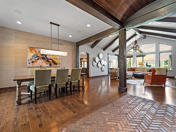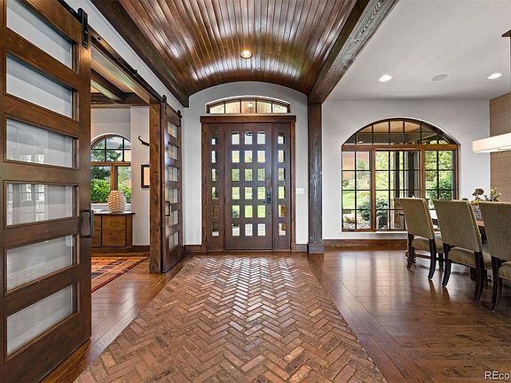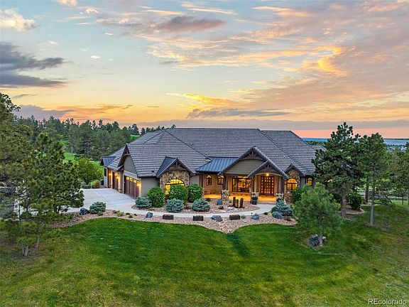Nestled among the towering pines on 15 acres in Parker, this exquisite custom estate offers a blend of elegance, comfort, and modern living. Built by Sterling Custom Homes and completed in 2014, this stunning mountain home showcases incredible peak to peak mountain views and extraordinary finishes at every turn. Thoughtfully designed to take advantage of the views, as well as embrace the secluded setting and abundance of natural light, no detail was overlooked. At just under 8,000 total square feet, this home includes five bedrooms, six bathrooms, a dedicated office, a fully finished walkout basement, an attached three car garage, and a screened in outdoor porch. The gourmet kitchen is the heart of the home and a chef’s dream with stunning high-end appliances, a walk-in pantry, large island, an eat-in area, loads of counter space and ample storage. Outdoors, you’ll find an immaculate 2,500 square foot barn and a true luxurious outdoor oasis featuring a pool, hot tub, a two-story deck both covered and uncovered, and fire pit/sitting area, all perfect for enjoying the over 300 days of Colorado sunshine. Ideally located just minutes from downtown Parker, major interstates, and in the award-winning Douglas County Schools, this is an incredible opportunity to live the ideal Colorado lifestyle.