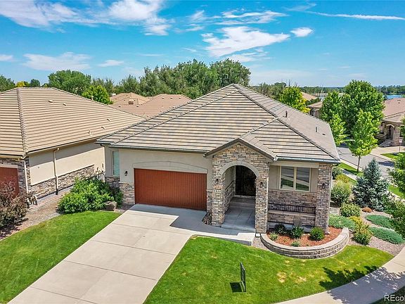 RARE find at the coveted Cove at Raccoon Creek close to the neighborhood lake! Superior craftmanship and elegance! Grand front entrance with custom entry door/arched entryways and 10 to 14 foot ceilings, custom hand-troweled textured walls, high-end finishes, gleaming wood floors, plantation shutters! The open floor plan encompasses a breathtaking oversized great room/stunning fireplace/open kitchen/dining area with expansive windows flooding the living space with natural light! Gourmet kitchen is a chef's dream with 42 inch custom high end cabinetry, gorgeous granite and tile, pantry and high end stainless steel appliances. Open dining area opens to private covered patio. Guest bedroom with pretty 3/4 bath right next door - wonderful study with lots of light - primary suite is a luxurious retreat with upscale 5 piece bath with oversized soaking tub, 10 ft tiled walk-in shower, double vanity and plenty of closet space which adjoins a large laundry room with work sink. Open stairway to builder-finished daylight basement offering an expansive space with a bar for entertainment and relaxation! Two more spacious bedrooms each with a lovely tiled bath! Separate den area for flexible space! One of the largest lots in The Cove - 628 oversized finished garage - quiet small established premier community where you can enjoy a scenic walk, bird watch at the nearby lake, play golf at nearby Raccoon Creek,or walk to nearby shopping, dining and entertainment! ASK SANDI ABOUT BELOW MARKET INTEREST RATES FOR THIS HOME AND $15,000 GRANT MONEY!