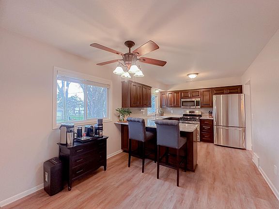 Large and updated 5-bedroom Rambler situated on a great lot with fenced-in yard located in a super convenient Cottage Grove neighborhood. The main level is highlighted by an updated kitchen with quartz countertops, brand new flooring, stainless appliances, and cabinets with soft close functionality. Original hardwood floors and beams nicely compliment the updated kitchen. 3 bedrooms and a private primary bathroom make main floor living super easy. The lower level is highlighted by a large family room and two more bedrooms. Use a bedroom as a dedicated office and/or exercise room.