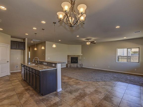 This brand new Reserve Home, is move in ready and built to impress. The popular 1763 sq ft 3 bed 2 bath open floor plan is light and bright. The great room has an upgraded cozy corner fireplace. There is tile flooring in the kitchen, baths, and all walkways. The kitchen has an island, granite counters, stainless steel appliances and under cabinet lighting.The spacious master suite has a large walk-in closet, separate granite vanities and a large full tile surround walk-in shower.The back patio is covered and perfect for outdoor living. Backyard fencing and front yard landscaping on a drip system is all included.Builder incentive... free backyard landscape with rock ground cover and two trees on a drip system OR a stainless steel refrigerator to match existing appliances choose between two.