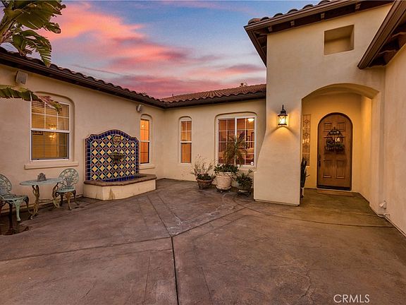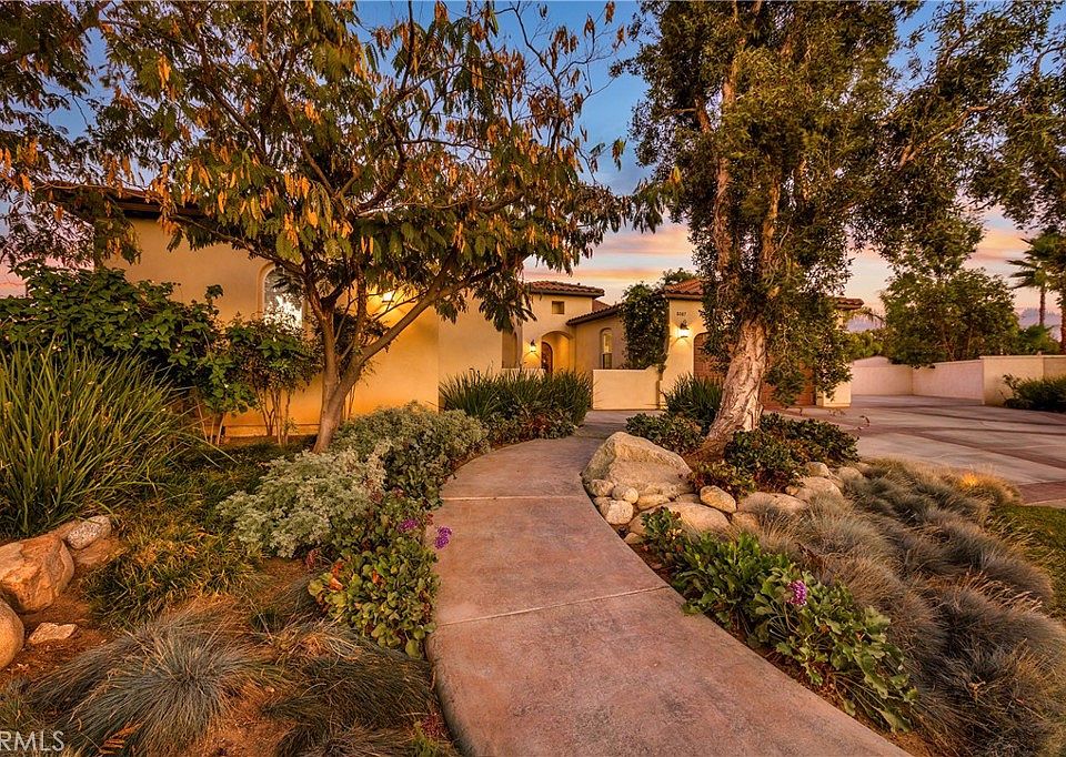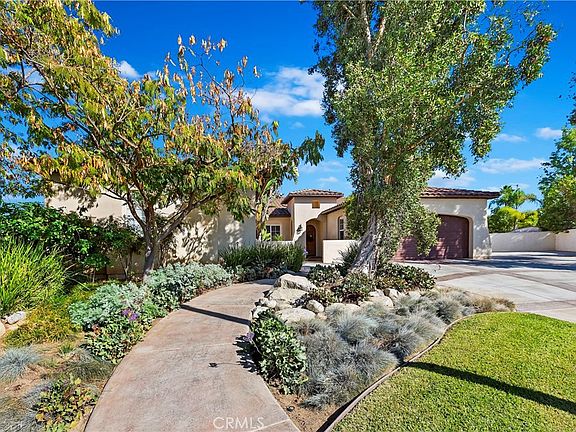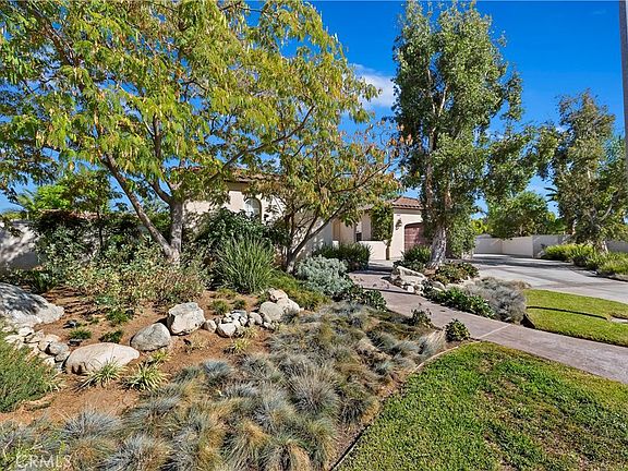 Stunning Rancho Valencia gated community semi-custom home. Step up to luxury in this single-story home with incredible grounds and picturesque view of a private orchard. This open floor plan has a spacious family room with built in dry bar, an entertainment center adjoining the gourmet kitchen with breakfast bar along upgraded DCS, Thermador appliances and Subzero fridge built in. Tiled floors accent the granite countertop with custom back splash, coffee station, wine fridge and walk in pantry add to family living at its best. All bedrooms have walk-in closets, upgraded tiled bathrooms with Villeroy and Bock tile accents, along with overhead lights and fans. The drought tolerant yard offers delightful areas to entertain including a private courtyard with fountain designed with the Alhambra tile pattern, accented concrete in all three patio areas, a floral ,lantana walk way with incredible tree specimens throughout, a separate garden with raised planters and multiple fruit trees provide a retreat for the gentleman farmer, along with an outdoor fireplace with views from the BBQ seating area that seats 8 people along with a raised spa/fountain. A side basketball court or “party area” is perfect for entertaining. This family home is upgraded and ready to move in to for the discerning buyer.