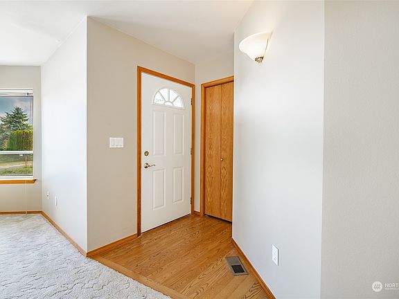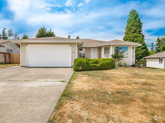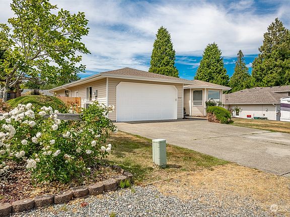 Exceptional single-level home with mountain views & excellent sun exposure. Rare find, elevated location with a level homesite. Provides wide parking space, including a potential area for boat or RV parking, not situated in a floodplain. Backyard is expansive & fully fenced. Home is 1503 sq. ft. 3 bedrooms, 1.75 baths, a Great room, & Living room. Vinyl siding and a composition roof, while the interior offers oak hardwood flooring entry, Great room, dining, and kitchen areas. Additional highlights include a spacious driveway, a 2-car attached garage, gates on each side of the home leading to the fenced backyard. Birch Bay Village amenities include 24/7 security golf, marina & more, 2 hours from Seattle, 15 minutes to Canadian Border.