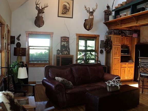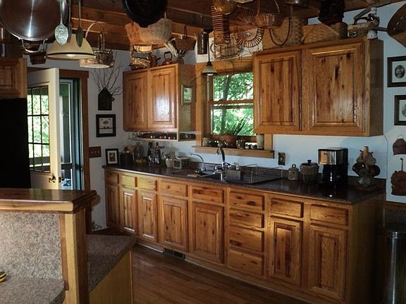 For more information on this property, contact the listing agent, Sally Goodnow at or SallyGoodnow@howardhanna.com. Free gas to transfer with home! Designed & lovingly built, this Adirondack-style home brings the outdoors in with an 8x68 wrap around porch, 14x16 rear deck & walk-out patio from lower level. Beautiful knotty-oak fully applianced kitchen with exposed beams. Great Room with cathedral ceiling & heatalator wood burner fireplace. 1st floor has a full granite bath, large laundry room & a bedroom. 2nd floor has a loft overlooking the Great Room, third bedroom, master with private breakfast balcony, full bath & sitting area currently an office. Lower Level has a rec room & bar, complete with all the amenities. So many possibilities with the property-a hunting lodge, raising livestock, or your own private retreat. Rustic & rugged, this home was built as a celebration of nature. Certified with the National Wildlife Fed. for a Backyard Wildlife Habitat & animals abound here-deer, wild turkey, raccoons, birds & butterflies. Mowed trail leads to private area w/tables, chairs & fire-ring.