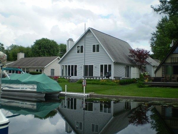 WAWASEE CHANNEL FRONT HOME WITH ACCESS TO A LAKEFRONT SWIM BEACH. .....3 bedrooms, 2 baths, open concept home on a wide, clean Wawasee channel that gives you access to over 3000 acres of prime water fun! This move in ready home features open living, dining and kitchen areas with sliding glass doors out to the waterfront deck. The beautiful stone fireplace is a focal point of the spacous living room. 2 bedrooms on the main level with a full bath and laundry. Upstairs is a large master bedroom suite as well as an open loft that would make a good office area or sitting room. Outside at the waterfront you will find that the pier runs the length of the lot, landscaping is easy care. The open deck wraps around the the house to a second sliding door off the kitch so that you can easily slip out to grill close by. An attached oversized 2 car garage will give you lots of space for cars, boats and lake toys. Swim beach for just this area is located a short walk down the street to the lakefront. Immediate occupancy upon closing........