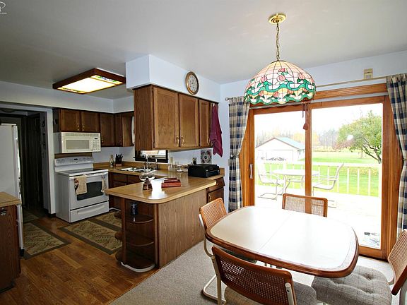 Country treed setting on 1.4 acres with 40 x 30 stick built barn that is heated insulated plus floor drains and epoxy floor. 4 bedroom home with newer Wallside vinyl windows, closet organizers, Pella slider and security alarm. Fully applianced oak kitchen. Day window family room with gas log fireplace. Include: barn refrigerator. Fenced yard with fire pit.