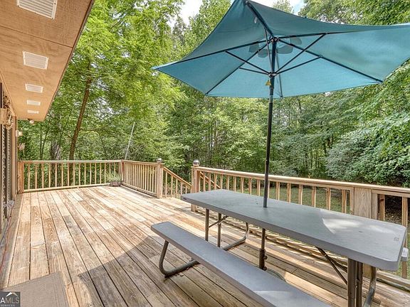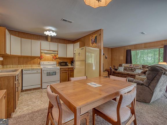 Tucked away in the heart of Young Harris, this charming 3-bedroom, 2-bath mountain retreat sits on over 2 acres of unrestricted land, offering both privacy and endless possibilities. Step inside to a cozy open layout where the living, dining, and kitchen flow seamlessly. Large windows and sliding glass doors bring in natural light and views of the peaceful wooded setting. The kitchen features plenty of cabinet space, while the spacious living area offers direct access to the wraparound deck-ideal for morning coffee or evening relaxation. The home includes three comfortable bedrooms and two full baths, giving you plenty of space whether you're looking for a full-time residence or weekend getaway! The exterior features a covered carport, generous outdoor space, and a short walk down to the level yard! Located just minutes from downtown Blairsville, Hiawassee, Lake Chatuge, hiking trails, and Brasstown Bald, this property combines convenience with that tucked-away mountain feel. **Check out the Virtual tour**