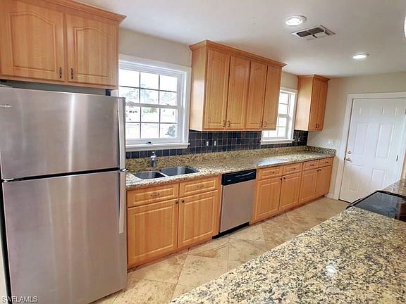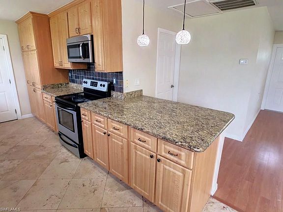 This gorgeous remodeled home features open floor plan, ample 42" cabinetry, granite counter tops, kitchen peninsula, stainless steel appliances, laminated wood floor throughout, crown molding,French doors, fenced backyard, extra large 2 car garage (546 sqft) for storage and parking, southern exposure and room for a pool. NO HOA fees. Newer Roof (2007) and AC. Conveniently located in a nice neighborhood, near shopping malls, airport, I-75, 41 and good schools. Hurry, this home won't last long. Owner financing available.