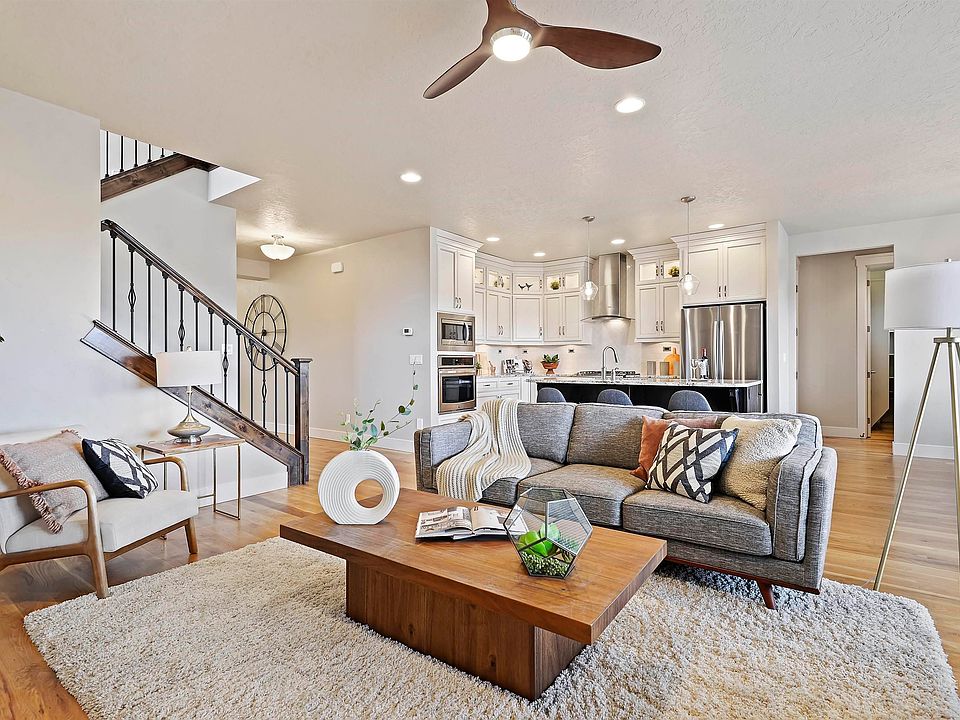 Extraordinary Price Improvement! Captivating Boise foothill views await in this luxurious, upgraded home. Quality construction, modern finishes, and impeccable details define this spacious residence. Abundant natural light, hardwood floors, and contemporary fixtures create an inviting ambiance. The gourmet kitchen boasts stainless steel appliances, including two ovens. Enjoy privacy and tranquility while being just minutes from Downtown, highways, and the airport. Outdoor enthusiasts will appreciate the proximity to Micron, Lucky Peak, and the Oregon Trail. Experience elegance and convenience in this exceptional home.