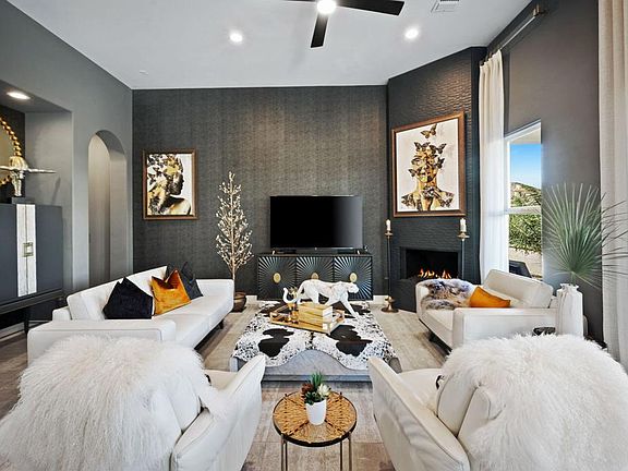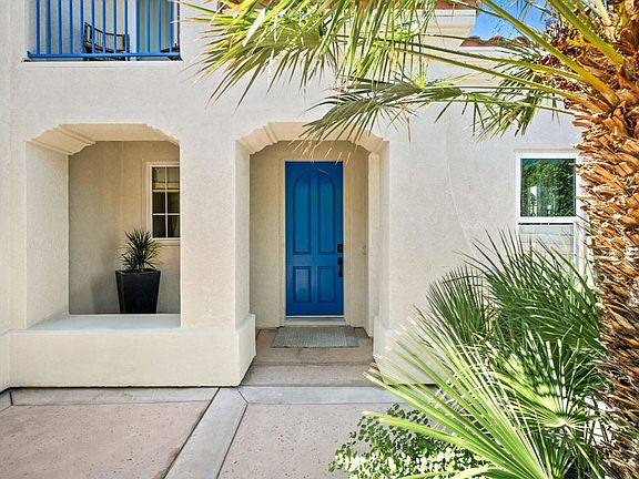 Designer Showcase Home. Completely remodeled ($100K+) over the past five years. Includes all new gourmet kitchen with custom cabinetry, quartz waterfall countertop, and new appliances. The great room design boasts raised 12-foot ceilings, archways, decorative linen panels, a luxury wallpapered accent wall, custom lighting, and a tiled fireplace. Abundant windows provide natural lighting and views of lush landscaping. The owner's suite is on the main level. It has 10' coffered ceilings, an oversized sliding glass door with scenic views. An archway leads into the ensuite bathroom with beautiful porcelain tiled flooring and walls, custom floating and back lite cabinetry, dual sinks, a free-standing soaking tub and tiled glass-encased shower. An additional archway leads into the walk-in closet with custom cabinetry. The main floor powder room includes designer floor tiles and a custom floating cabinet with sink. Upstairs, there are two spacious rooms, each with sliding glass doors and amazing views, new carpet, and a Jack & Jill bathroom concept featuring custom cabinets, a tiled floor, and tiled shower. Scenic mountain views from the backyard, two covered patios with fans for expanded outdoor living, and custom landscaping that provides privacy, and features artificial turf and Canary Island palm trees. Additional updates include custom laundry cabinets and LG stacked washer/dryer, exterior painting, new energy-efficient HVAC system, new water heater, Simple Safe security system, and custom storage racks in the garage. Puerta Azul is an enchanting gated community of only 127 homes, neighboring PGA West, with outstanding amenities that include two large pools, a clubhouse, a fitness center, and a tennis court. This exceptional property is perfect for either seasonal ownership or as an investment property.