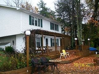 Lake front property on small rural 19 acre Loucks Pond. Hiking and cross country trails near by. Small (5hp) motor, non motorized boats allowed. 1/2 hour to Corning area, one hour from Rochester. Spacious Kitchen with open floor plan. Dining Living room combination with large windows overlooking the lake. Master Bedroom and Bath on upper level. Downstairs is a finished walk out basement. Large family room with laundry/utility closet, 2 bedrooms. Electric heat and Electric Fireplace. Doorto multi level deck, Play set, sand box, storage shed. (Internet 5907671-4/13/2012)
