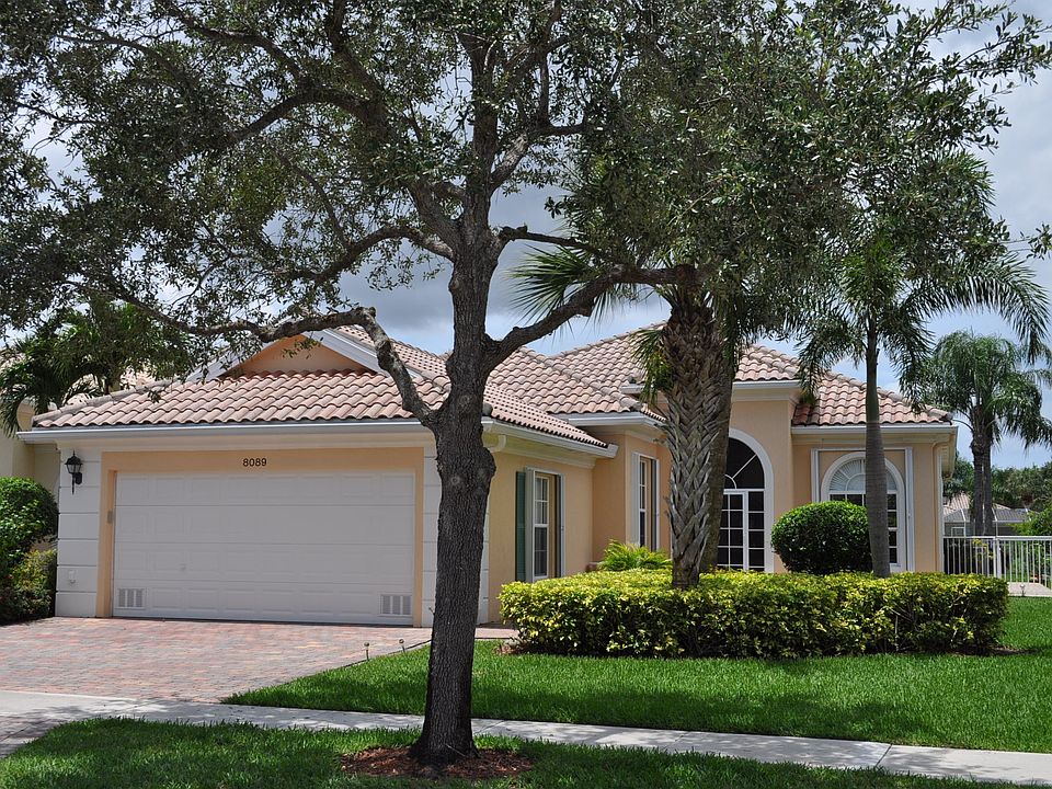 Located in the Resort Style community of VillageWalk in Wellington, this beautiful one story home has many of the upgrades you are looking for! This 3 bedroom Divosta built, poured concrete home, plus den is situated on an oversized lakefront lot. The home has plantation shutters and crown moulding in the main living areas. Accordion hurricane shutters on all windows for your convenience. The granite in the kitchen accentuates the maple cabinets and stainless steel appliances. Bathrooms have been tastefully updated. Step out the rear sliders onto the covered lanai with a beautiful heated, saltwater, screened in pool and deck facing one of the many lakes that connect throughout the community. Pool was recently resurfaced.