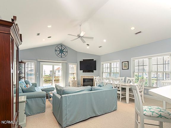 This stunning 4-bedroom, 5 bathroom coastal retreat is nestled on Topsail island offering views of both the Atlantic Ocean and the Intracoastal Waterway. This home features spacious living areas with large windows that flood the interior with natural light. Large primary bedroom is located on the 3rd level with ensuite featuring double vanity and large walk in closet with sound side deck.
