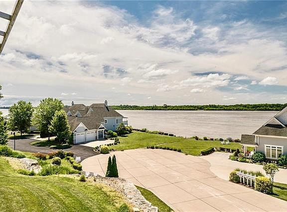 Need a change of scenery for your Work-from-Home Office? This magnificent Wind Rivers Condo with Mississippi River views is a must-see! This 2nd floor unit provides 2 bedrooms, 2 baths, a distinctive 2-story foyer, soaring ceilings & open floor plan. Condo is within walking distance to restaurants, wineries, shopping, walking/bicycle trails, boating & fishing! High quality craftsmanship in custom kitchen cabinets, solid surface counters, & dual window shades & treatments. Large master suite includes vaulted ceiling, large windows & slider access to deck. Master bath offers soaking tub, large shower & dual sinks. Main floor laundry. Full 9'x52' exterior deck provides amazing views of the river & wildlife. The large walk-in storage room over the garage could be converted into a 3rd bedroom/family/bonus room. Ownership includes use of in-ground condo pool & clubhouse which overlooks the river. A one-time, new owners assessment of $1,500 to HOA paid at closing. HMS Home Warranty Provided.