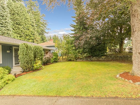 Spotless move-in ready rambler on huge, level lot with access to back yard Oversized one car garage has built in work bench & plenty of storage cupboards. Hardwood floors, masonry fireplace, updated bathroom. Spacious circular kitchen recently painted, all appliances remain. Step from slider out to deck & patio to a park-like back yard, room for sport court or additional shop/garage. Roof & 5 skylights two years old. Gas heat & H20. Tasteful colors. Great location & Everett Schools!