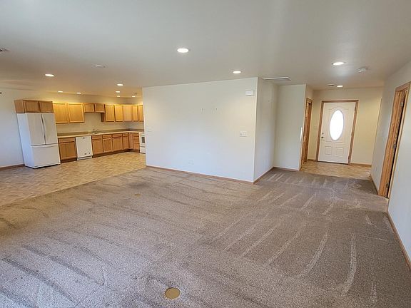Don't miss this opportunity for this zero-entry house and single level living. Built in 2017 this unit of the twin home offers a 2 stall garage, covered concrete patio, vaulted ceiling, in floor heat along with forced air. This three bedroom two bathroom home is conveniently located directly across the street from gas/grocery, only 5 blocks from the hospital, and across the highway from the Public School.