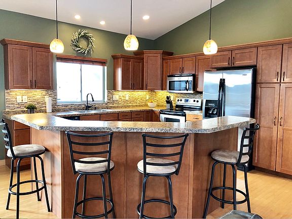 LETS LOOK! This spacious 4 bedroom 3 bath home features an open concept kitchen with island, stainless appliances, pantry & tile back splash. Real wood floors, custom blinds, vaulted ceilings, welcoming foyer with closet. LED lighting upstairs. Attached oversized 3 car garage with shelving & gas heater. There is a large, maintenance free deck, aluminum fence, sprinkler system with 8 zones, concrete curbing, & new rock. This home is decorated in the latest colors and is move-in ready. Call to see.