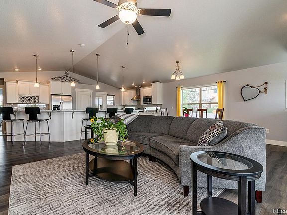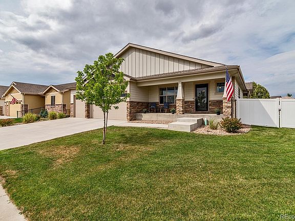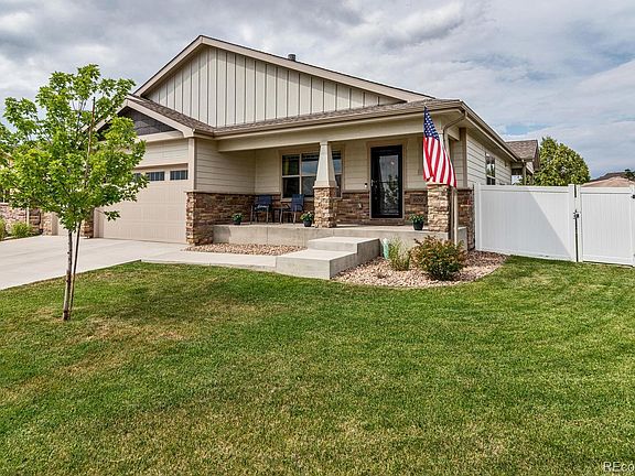 This house on a corner lot offers breathtaking mountain views! Ranch-style for easy living. The open floor plan has space for everyone and everything you need! Facing south, this house is full of natural light. You're welcomed home by a partially covered front porch. The main floor features luxury laminate wood-look flooring, vaulted ceilings and big picture windows. No detail is spared! The entryway has built-in storage. The living room has an eye-catching fireplace to enjoy in the winter. Sunny, nice-sized dining room. Expansive, gourmet kitchen to delight any chef and guests! It features beautiful marble-look laminate counters, ample white cabinets, farm sink, tile backsplash, pantry & more. The island with wainscoting can serve as more prep space and has a large 6 seat eat-up bar area for guests. All bedrooms and bathrooms on one level. Relax in the master suite with vaulted ceilings, walk-in closet, ensuite bath and makeup vanity. Spacious secondary bedrooms share a full bath. Make a bedroom your home office? Convenient main floor laundry room with wash sink & storage. Secluded backyard with a 6' white vinyl privacy fence and covered patio that flows onto large paver patio ready for summer entertainment! Wiring in place for a gas line to set up a BBQ grill. Sprinkler system for low maintenance. Doggie door for man's best friend. Extremely private with few neighbors. Privately owned land across the street. No rear neighbors! Awesome 3-car, oversized attached garage with side yard access and oversized driveway for additional parking. Look no further than Frederick for a vibrant community with a small-town feel. You're minutes from downtown Frederick with its shops, breweries, restaurants & schools. Rest easy, you're in a safe & quiet neighborhood. No HOA! This home backs to the neighborhood Maplewood Park. Enjoy easy access to I-25 to commute north to Fort Collins or down south to Denver. Plus, you're just east of Boulder and Longmont. Peaceful setting!