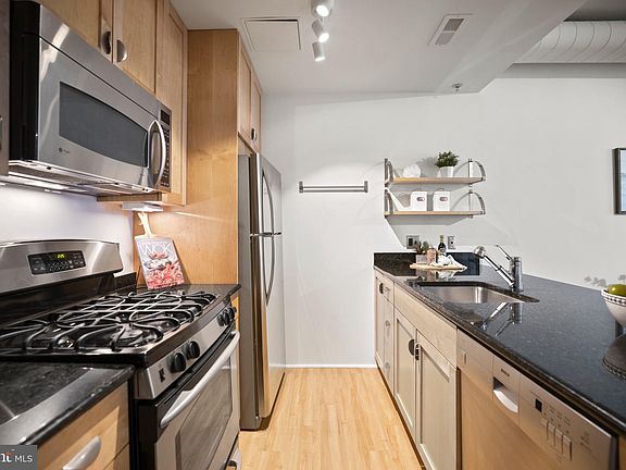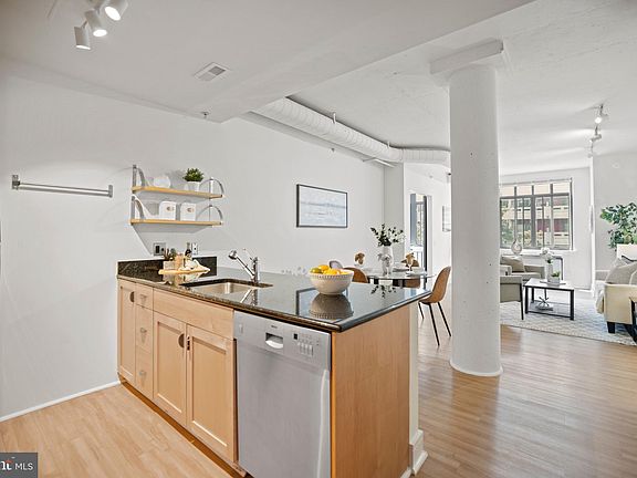 Huge $32K price reduction! Rarely available, sunny 2 bed, 2 bath unit with separately deeded GARAGE parking space in the boutique, 30-unit Chinatown East Condominium. This spacious unit with over 900 square feet of living space features industrial details such as exposed ductwork, 10ft+ ceilings and concrete accents. The kitchen is equipped with a gas stove, stainless steel appliances, Bosch dishwasher and breakfast bar area. The HVAC was replaced in 2022. The primary suite offers 2 closets, an en-suite bathroom and a large linen closet. The second bedroom offers great flex space and is large enough for a guest bed and work area. An in-unit W/D and dedicated garage parking complete the package. The expanded and upgraded rooftop deck renovation is underway. Developed by Bundy Development in 2005 (CityVista, The Conrad Hotel, City Center), Chinatown East Condominiums is pet-friendly, conveniently located within minutes to I-395, and walking distance to numerous bus stops, and 4 Metro stops (red, yellow and green lines) and Capital Bike Shares. The vibrant neighborhoods of Chinatown, Penn Quarter and Mount Vernon Triangle offer top DC restaurants, entertainment, shopping, grocery stores, and the Cap One Arena. This is city living at its best!