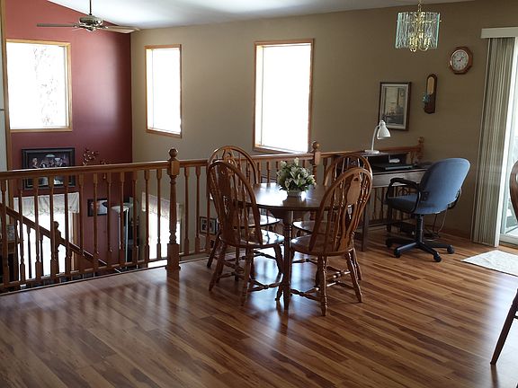 This custom home has it all! Spacious with vaulted ceilings and lots of windows. The open concept from kitchen to the great room with a fireplace lends itself to entertaining. Master bedroom suite has a huge full bath, a walk-in closet and a private deck. The bedrooms are all oversized with plenty of room. The garages are heated and the third stall boasts a 12 ft door. This is all on a large corner, wooded lot.