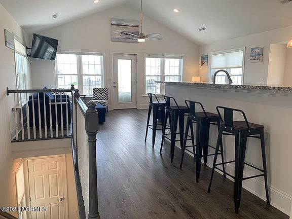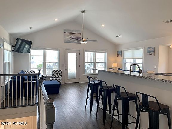 Beautifully updated 4 bedroom, 3 1/2 bath beach cottage, conveniently located 2nd row for easy beach access and ocean views. Updates completed in late 2020 and include updated kitchen, baths, LVP flooring, new fixtures, tastefully done to give you that wonderful beach house feel. Lovely reverse floorplan to take advantage of the ocean views and breezes. The middle level has a nice master bedroom that walks out to a private deck, two additional bedrooms, a laundry area and 2nd bathroom. The top level has a great room with vaulted ceiling and plenty of windows to let the light in to the open living/dining area. The great room walks out to the upper deck. The open kitchen was completely remodeled in 2020 with new cabinets, granite counter tops and stainless appliances. The top floor also has a 2nd master bedroom, spacious private bath, and an additional half bath off the great room. Under the home is parking and an outside shower to rinse off after your day at the beach. There is an outside storage shed for bikes, beach equipment, etc. Furnishings convey- except ladder and vacuum. This home makes a great vacation rental, a wonderful beach get-away, or a lovely new home at the beach with tasteful updates, ready for you to move in and enjoy island living.