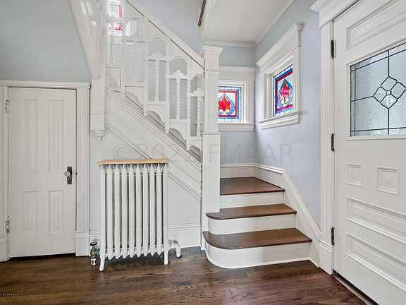 Prepare to fall in love with this stately Victorian on Fargo's prized historic 8th Street! You'll love the clean, bright main floor with refinished hardwood floors and original features including pocket doors, stained glass windows, and staircase. The dining room opens to a showstopping, well-designed kitchen with quartz counters top a long island perfect for seating or food prep. Gather around the new gas fireplace in the heart of the house or retreat to the main-floor bedroom, perfect for a home office or den. Four bedrooms upstairs include a primary suite with attached bath. The yard has a new patio and finished playhouse with power. Don't miss your opportunity to see this incredible home in a perfect location!