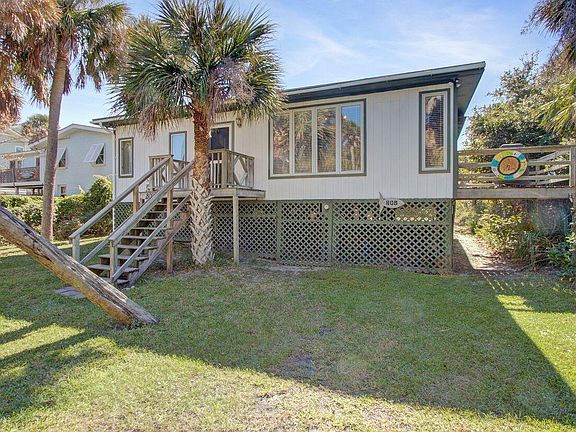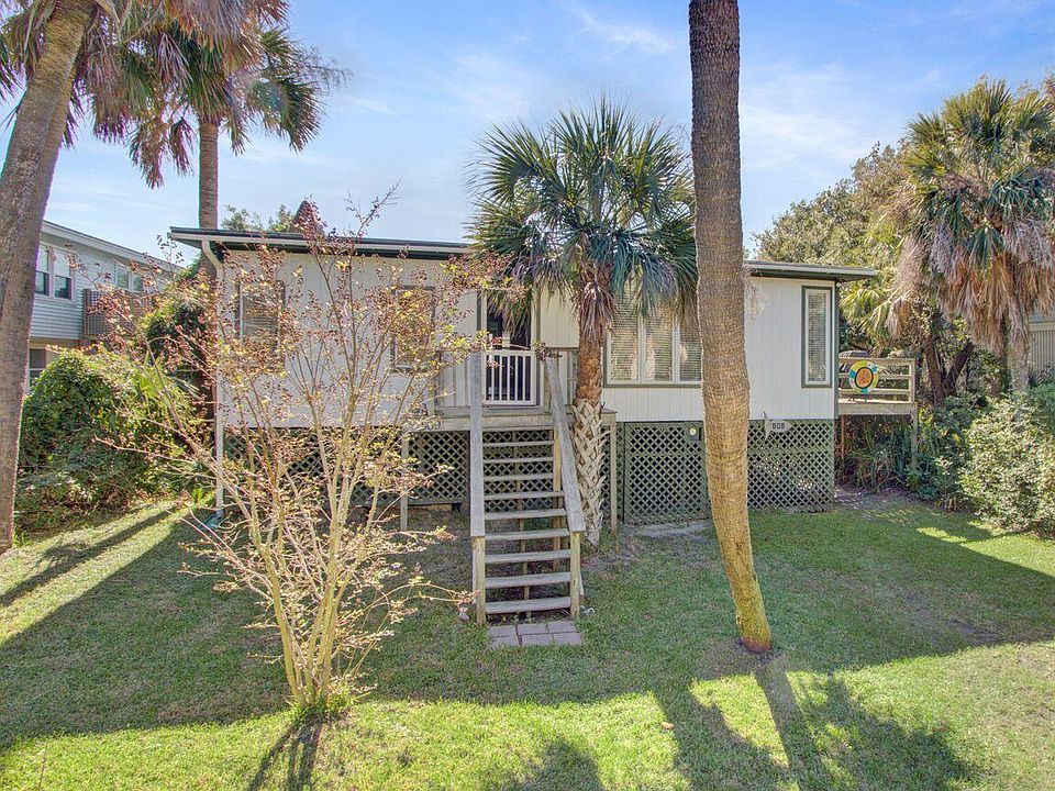 Want to wake up with epic sunrises and fall asleep to the soothing sound of ocean waves? That sweet dream can be a reality with this awesome Folly Beach bungalow. Walk to amazing eateries like Jack of Cups, Rita's or Chico Feo. The elevated exterior has a classic vintage beachside vibe with tall palms in the yard and a cool side deck. The large bright, tiled, kitchen offers lots of wood cabinetry, quality appliances, plenty of counter space, dual sink and stellar overhead lighting. The bathroom provides lovely finishes and a unique shower. A large living area, with knotty pine paneled walls, almost has a ship feel to it. The ideal place to hang with friends post an evening beach walk, this room has great bones and a Charleston brick fireplace and mantle. Built in 1940, this 1,258-square-foot abode has seen lots of upgrades throughout the years. Own a piece of history with this property that dates back to a time when Folly was a sleepy beachside community. Central heat and AC make this space comfortable through all seasons. Whether you want to have this dwelling as an investment property, a vacation home or your permanent residence, it is sure to provide lasting memories! Experience a laid back lifestyle with this retro charmer. Boat Owners can also enjoy a short walk to Folly Marina. Which has boat slips available. Use preferred lender to buy this home and receive an incentive towards your closing costs!