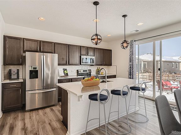 BEAUTIFUL HOME in the wonderful Colliers Hill Community!! The minute you walk in you will fall in love with the bright and sunny open floor plan!! Gorgeous kitchen with quartz counter tops, stainless steel appliances, 42" custom cabinets. Walk-In pantry. Large kitchen island. Center meet glass patio doors that step out onto the spacious patio and beautiful backyard perfect for entertaining! Cozy family room open to the kitchen and dining area. Beautiful wall gas fireplace perfect for those snowy nights! Main floor office area!! Gleaming laminate wood floors throughout! The upper level has 4 spacious bedrooms and 2 bathrooms. Master retreat with double sinks, walk in shower, huge walk in closet!! Upstairs laundry room! New interior paint on upper level, brand new carpet! Washer and Dryer included! 2 car garage. Old-Town Erie is only a short walk away and there are over 15 miles of trails throughout the community. Within walking distance to the wonderful elementary school and high school. Community pool and clubhouse nearby. Don't miss out on owning this newer home in a wonderful neighborhood!