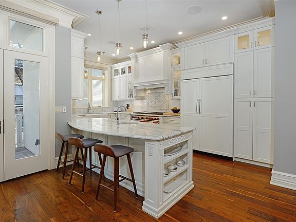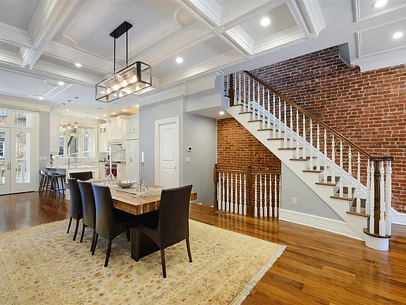 Rare 20-foot wide brownstone with bright open concept floor plan, rear deck & private landscaped backyard. Newly renovated for the modern urban family, offers a more contemporary floor plan with 4 bedrooms & 3.5 baths over 3 floors. The parlor floor designer kitchen features a high end appliance suite inc. 6 burner Wolf Range, marble counters, farmhouse sink and plentiful custom cabinetry. An impressive master bedroom suite with walk-in closet and marble bath with separate soaking tub. Garden level with 1 bedroom and full bath, family room with gas fireplace & wet bar that leads to the outdoor patio. Additional home features include; original exposed brick, coffered ceilings, new crown moldings, high ceilings, fireplaces, original mantles, natural walnut flooring throughout, laundry room and much more. Perfect location on Hoboken's most charming street, close to all the city has to offer: schools, parks, dining, shopping, waterfront and all NYC transportation. Registered as 2 family, used as a one. Downstairs can be made a separate apt.