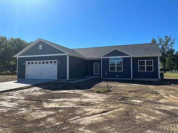 Beautiful, new 3 bedroom, 2 bath home with full 9-foot basement, with two egress windows for future finishing! Open stairway, kitchen dining combo, with sliding doors in dining area to a 12 x 12 covered patio on the back. Open concept design with living room off the dining/kitchen area with a gas fireplace. Entry foyer, hall bath and in-suite bath and huge walk-in closet in the master bedroom. Master bath has a and tub and walk in shower! Neutral interior colors, and gorgeous light fixtures and cabinetry- so easy to compliment with your taste! Main floor has 9-foot ceilings throughout! Kitchen has granite counters with nice size island. Laundry room is located right as you come in from the finished 2+ car attached garage! Builder's one year home warranty! $2,500 appliance credit! All located in a lovely new subdivision with a 2-minute golf cart ride to the golf course and minutes to I-64 exit!