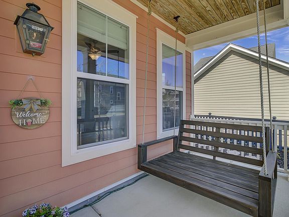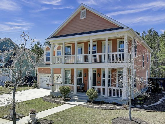 Welcome to this stunning home in the desirable Carnes Crossroads community of Summerville. Situated amongst a historic barn turned event venue, ponds, parks, and walking trails, this community harkens back to a simpler time where neighbors knew you by name. Approaching this four bedroom, three bath home, you'll immediately notice the welcoming double porches, two car garage with carriage style doors, and gas lanterns flanking the front entryway. Cement plank siding covers the exterior adding that peace of mind for extra durability and low maintenance. The lawn is equipped with an irrigation system adding another level of easy maintainability. Inside you'll find a flex space or formal living room (with gas line already ran for a ventless fireplace) off of the foyer and a generously