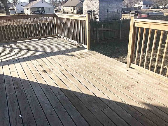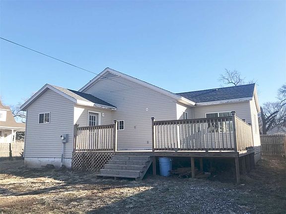 Nice 2 bedroom, 2 bath bungalow within walking distance of historical downtown Fairbury. The spacious living room with newer wood flooring, opens to the updated kitchen including a fantastic butcher block island and sun room that would make a great dining room or office. This home also features main floor laundry! Full attic and basement provide lots of storage space or could be finished for additional living areas. The large, fenced in backyard and recently added deck is perfect for entertaining.