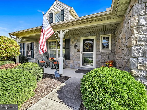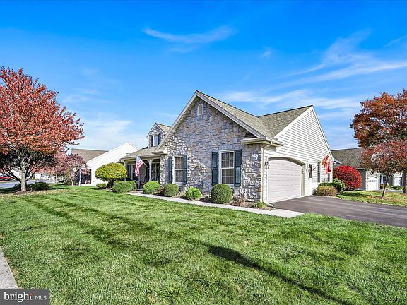 Welcome to this beautifully maintained single-story home in the desirable 55+ Brookshire community in Manheim! This spacious 3-bedroom, 2-bathroom home is filled with premium upgrades and has been meticulously cared for. From the moment you step inside you are welcomed by gleaming hardwood floors and a vaulted ceiling in the living room, where a brick-surrounded gas fireplace creates a warm and inviting space for those upcoming chilly nights. The expansive kitchen is designed for both style and functionality, boasting Corian countertops, a central island, stainless steel appliances, and abundant counter space—perfect for cooking and entertaining. The primary bedroom includes plenty of storage with a regular and walk-in closet. The adjoining primary bathroom provides a spa-like retreat, complete with a soaking tub and a tiled, walk-in corner shower. Practical updates make this home truly move-in ready, with first-floor laundry, a newer roof, furnace, A/C, water heater, and water softener, along with updated exterior doors. Enjoy the four-season room with easy access to a beautifully hardscaped patio, ideal for outdoor relaxation and gatherings. Brookshire is a peaceful community with a relaxed atmosphere offering a clubhouse that overlooks the scenic three-acre community lake. Residents can relax in the lounge and reading area, join neighbors and friends for a friendly hand or two at the game tables, or get lost in a favorite book at the library, And with the kitchen and banquet facilities, entertainment options. The clubhouse also has a fitness room as well as an aerobics and dance studio. There is also a coffee shop and Beauty Salon. Showings begin 11/07/2024