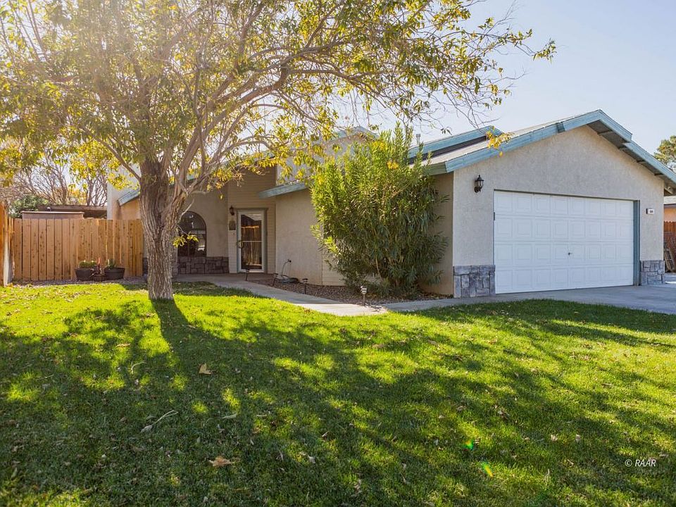Charming 3 bed, 2 bath home w/ desirable open floor plan & DUAL cooling. Living room off the front entry w/ beautiful wood flooring, vaulted ceiling, cozy fireplace & french door back patio access. Generous kitchen overlooks the dining nook & features updated granite countertops, stainless steel appliances, plenty of storage space, recessed lighted and tile flooring. The master suite provides back patio access, spacious walk-in, vaulted ceiling & a beautifully updated bath w/ large vanity and private toilet/shower space. There are 2 nicely sized guest bedrooms in the home w/ carpeting and ample closet space. The guest bath has also been updated w/ tile flooring, new vanity & plumbing/lighting fixtures. Additional features of the home include: built-in hallway storage and great covered back patio space, mature trees & storage shed in the backyard. The water heater, furnace & evaporative cooler were replaced and AC was installed in January 2018.
